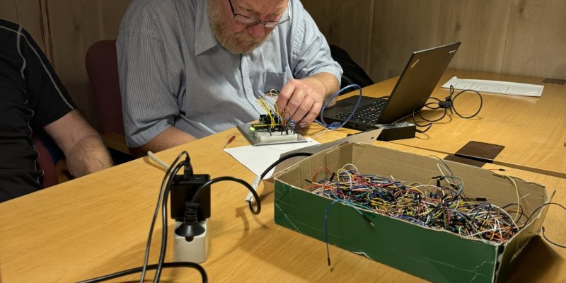 Der blev arbejdet intenst og ihærdigt på vores sidste Arduino aften den 13. november, herunder kan man se hvor der bliver arbejdet med kode og ledninger. Nogen var hurtige nok til at få noget frem på skærmen som man kan se: